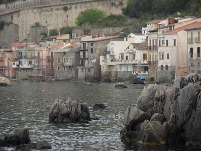 The narrow streets of Chianalea feature traditional houses built directly on cliffs, with waters of the Tyrrhenian Sea reaching their foundations.