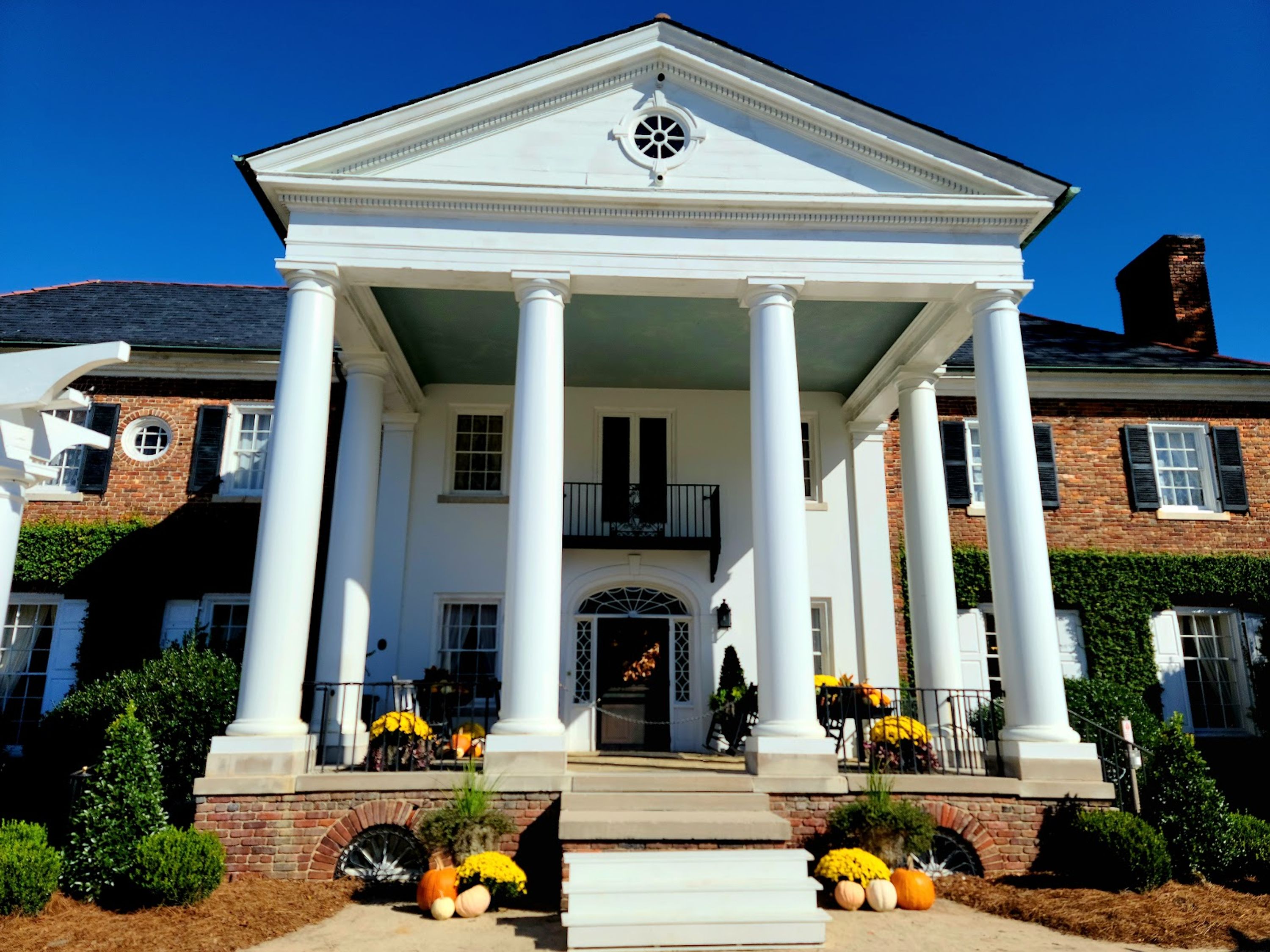 The property extends across 738 acres featuring a Georgian-style mansion, original slave cabins, and an entrance lined with 89 Southern live oak trees.