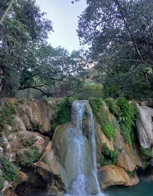 Mil cascadas is a waterfall system featuring multiple tiers of cascading waters that flow through limestone formations along the Granados River. The site includes numerous natural pools at varying levels, each formed by the water's movement through the rocky terrain.