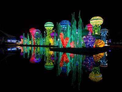 Dubai Garden Glow contains four sections including a Glow Park with millions of LED lights, an Art Park, a Glow Safari, and a Dinosaur Park.