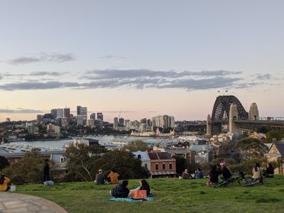 During New Year's Eve celebrations, the western section of Observatory Hill accommodates 4,500 people for fireworks viewing across Sydney Harbour Bridge.