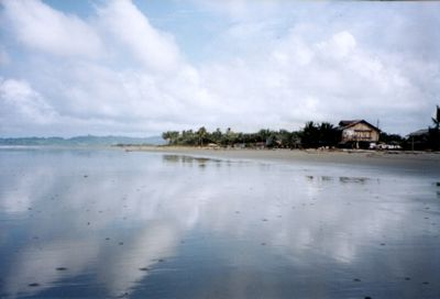 Muisne Beach is a long stretch of sand along the western edge of Muisne Island, facing the Pacific Ocean directly. Palm trees line the shoreline, and the water invites swimming and wading.
