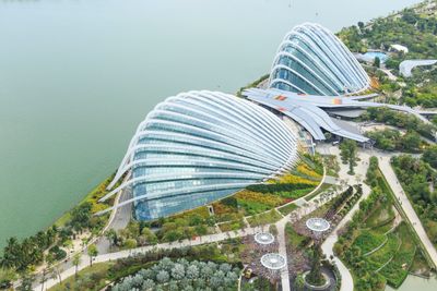The structure maintains specific cool-dry conditions through advanced systems, enabling plants from Mediterranean climates to grow in tropical Singapore.