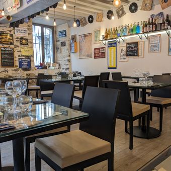 The establishment combines characteristics of both an Irish pub and a French restaurant, serving international dishes alongside a selection of craft beers.