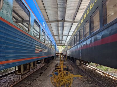 The Railroad Museum displays a collection of historical locomotives, railway cars, engineering tools, and vintage transportation equipment from different periods.
