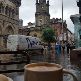 Starbucks began as a company in the United States and has grown into one of the world's most widespread coffee chains. The Glasgow location follows the same model as other branches while fitting into the local city center setting.