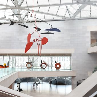 The museum exhibits an extensive collection of twentieth-century artworks, including pieces by Pablo Picasso, Jackson Pollock, Mark Rothko, and Alexander Calder.