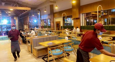 The office functions as a multi-purpose establishment, merging property management services with a restaurant in a single commercial space.