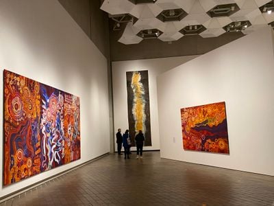 The collection includes extensive Australian Indigenous art, European paintings, Asian artifacts, and contemporary works from international and local artists.