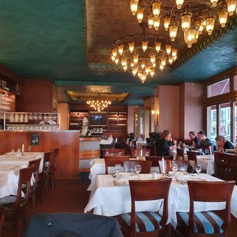 The restaurant is located in western Berlin and operates during extended hours, making it accessible for different dining times throughout the day. Payment options are flexible, and the open kitchen allows visitors to see their meals being prepared immediately.
