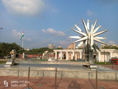The National Charkha Museum features a monumental stainless steel spinning wheel measuring 26 feet in length and 13 feet in height at its center.