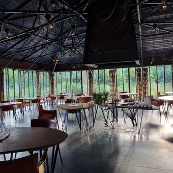 The place offers overnight stays in wooden huts on the grounds, with breakfast service available the next morning in the natural surroundings. This allows for an extended visit that complements the dining experience.
