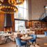 Fabius Restaurant is an Italian dining establishment in Kyiv featuring five separate dining rooms, including a main hall with a fireplace and an aquarium stocked with fresh lobsters. The various spaces allow for different types of dining experiences and group sizes.