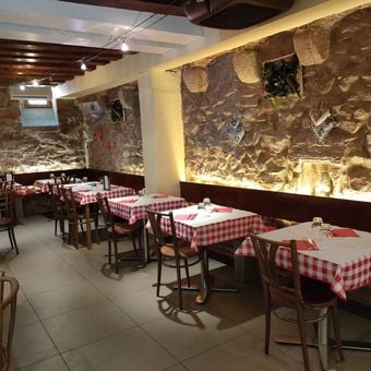 The restaurant sits in a quieter area away from main tourist thoroughfares in Riquewihr, making it easy to enjoy a meal without heavy crowds. The shaded terrace is a good option on warm days if you prefer dining outside rather than in the cellar space.