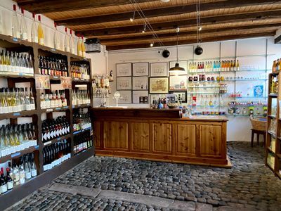 The museum displays extensive collections of distillation equipment, traditional stills, and various spirits including brandy, liqueur, whisky, gin, vodka, and tequila.