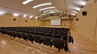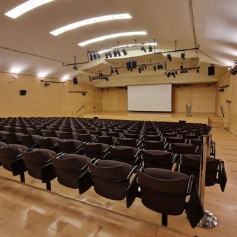 The museum contains an amphitheater seating 300 people, exhibition halls spanning 3,000 square meters, a bookshop, and a restaurant opening to the courtyard.