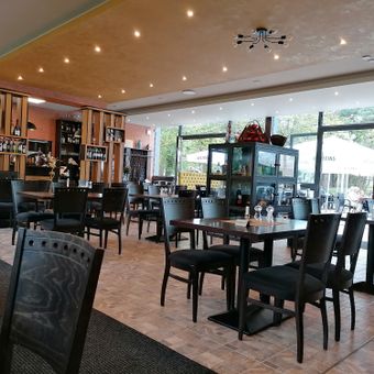 Pellorus is a Greek restaurant in Leipzig offering a modern dining room with about 140 seats and a covered terrace with an additional 150 seats. The space accommodates different group sizes and combines comfortable indoor areas with outdoor seating.