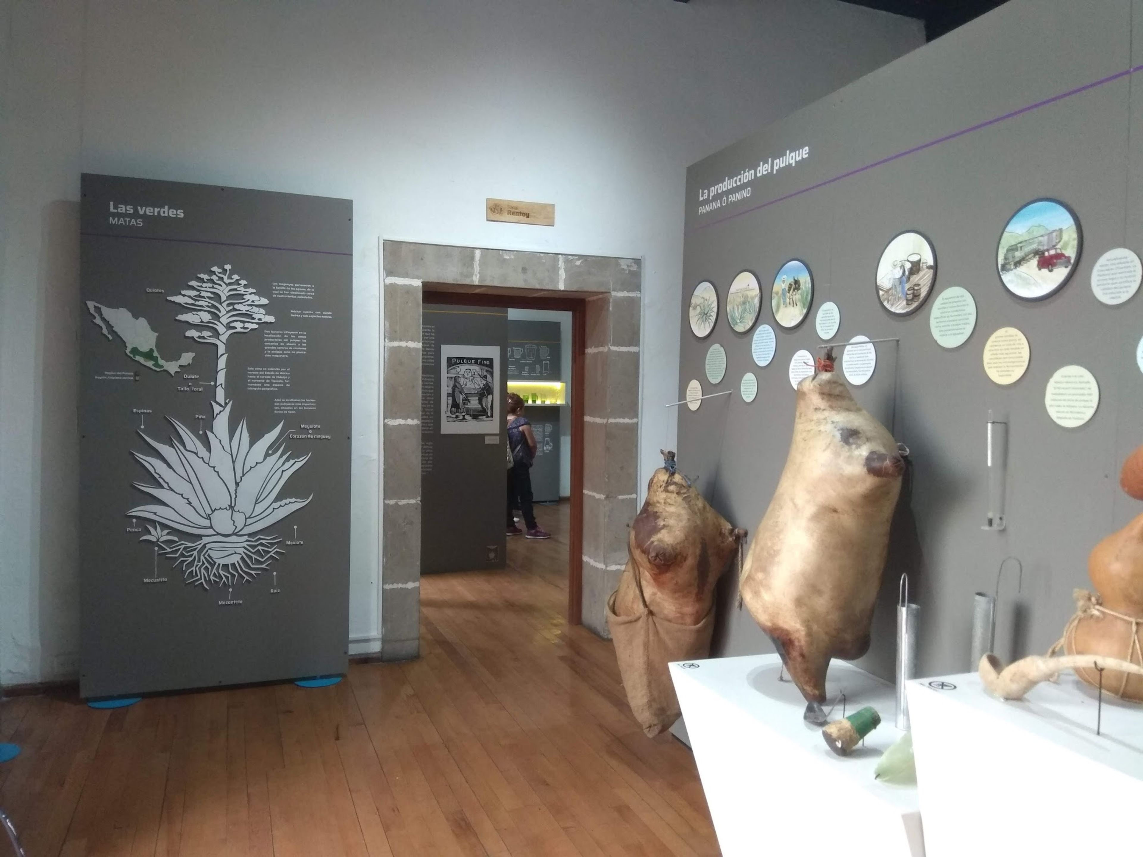 The exhibition spaces present the deep connection between pulque and Mexican society through artifacts, traditional preparation methods, and regional variations.