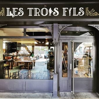 Les Trois Fils combines a bar and restaurant concept, offering traditional French cuisine alongside contemporary interpretations in a social dining environment.