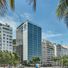 The hotel offers a heated rooftop pool with views of the city and the ocean, providing a relaxing experience. This spot is popular with guests, especially in the evening when the sky changes colors and city lights come on.