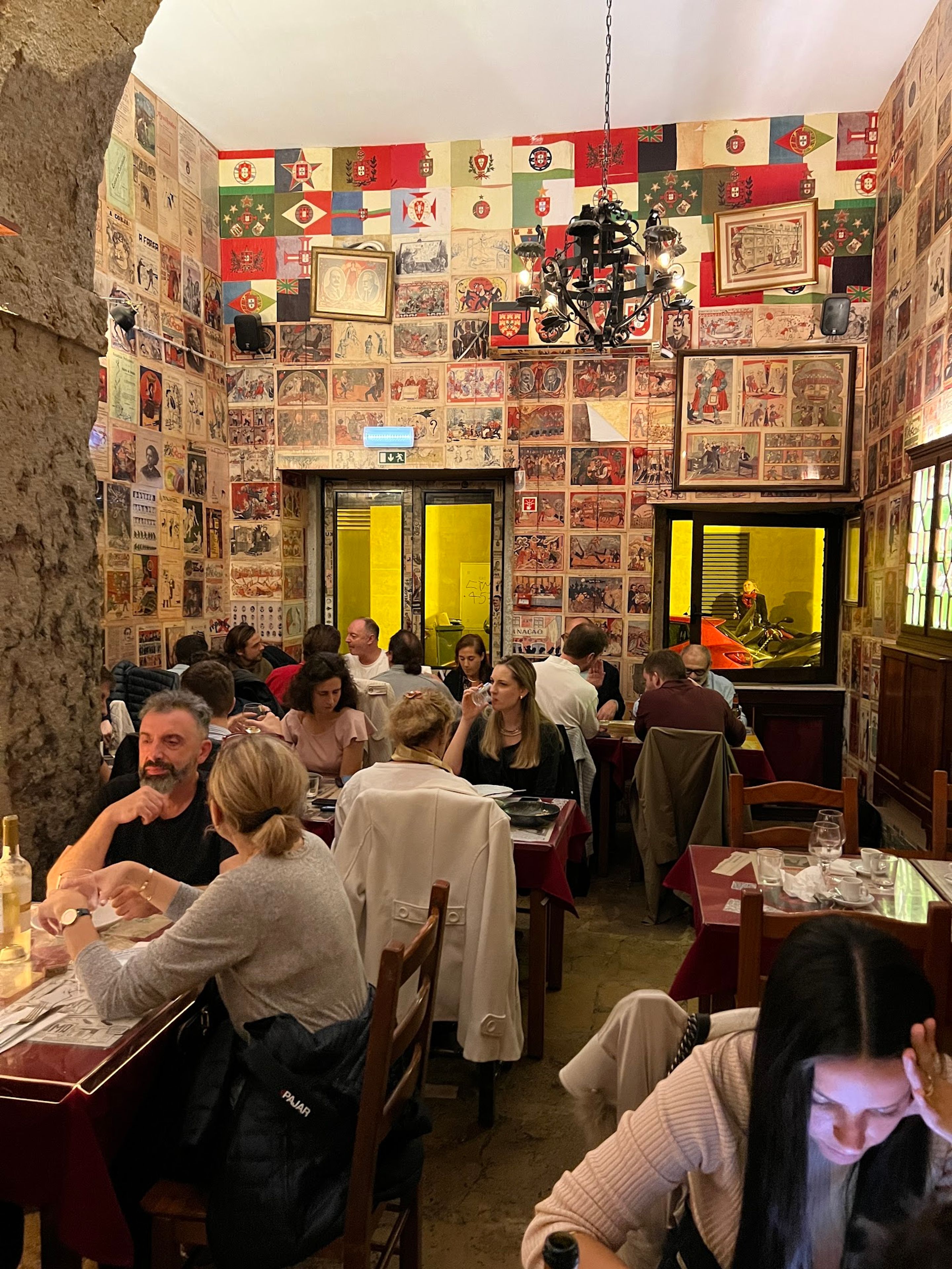 Taberna Anti Dantas prepares Portuguese dishes in a traditional setting with stone walls, wooden tables, and local decorative elements.