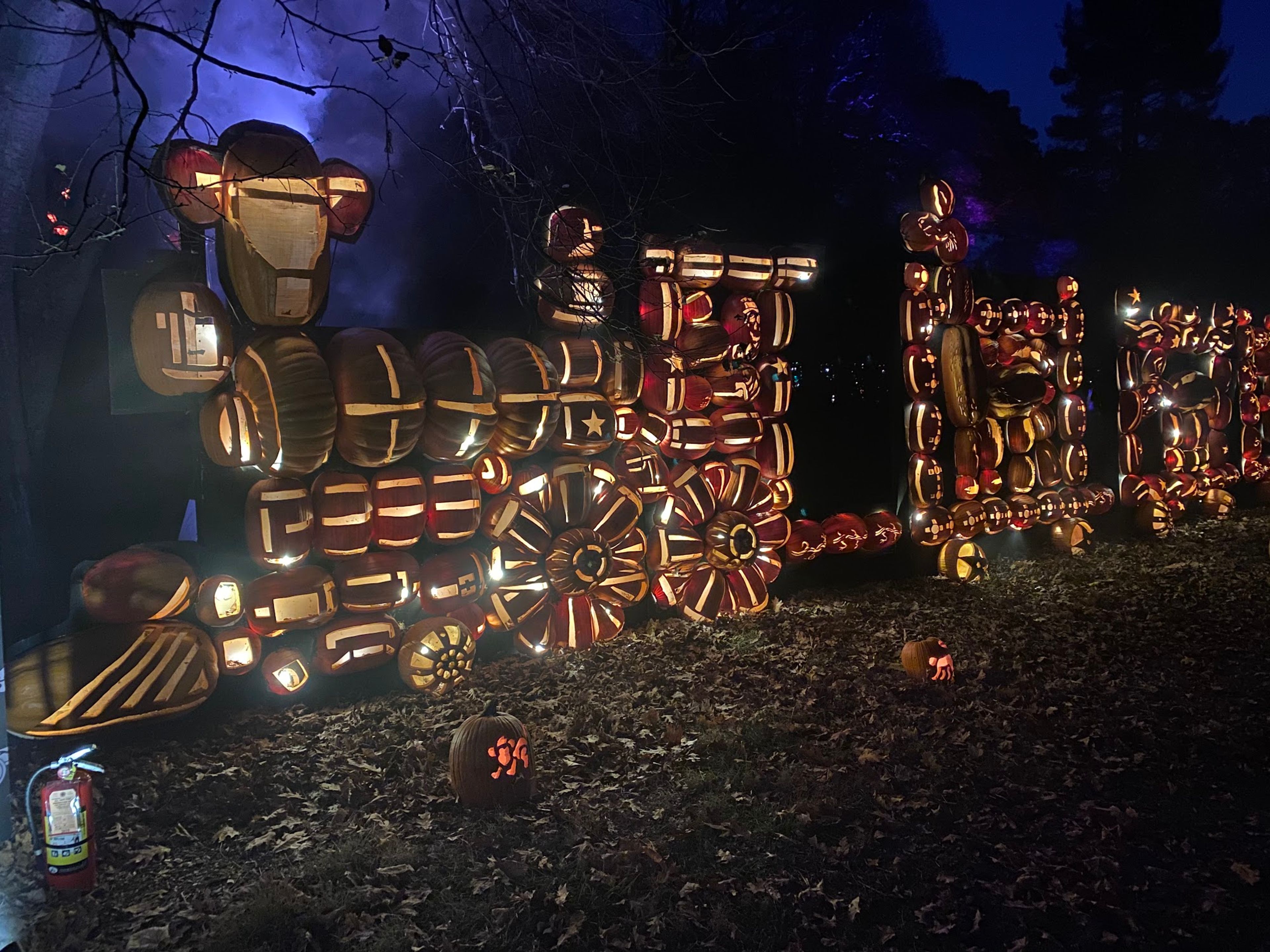 Over 7,000 hand-carved pumpkins create illuminated displays across the grounds of an 18th-century estate along the Hudson River.