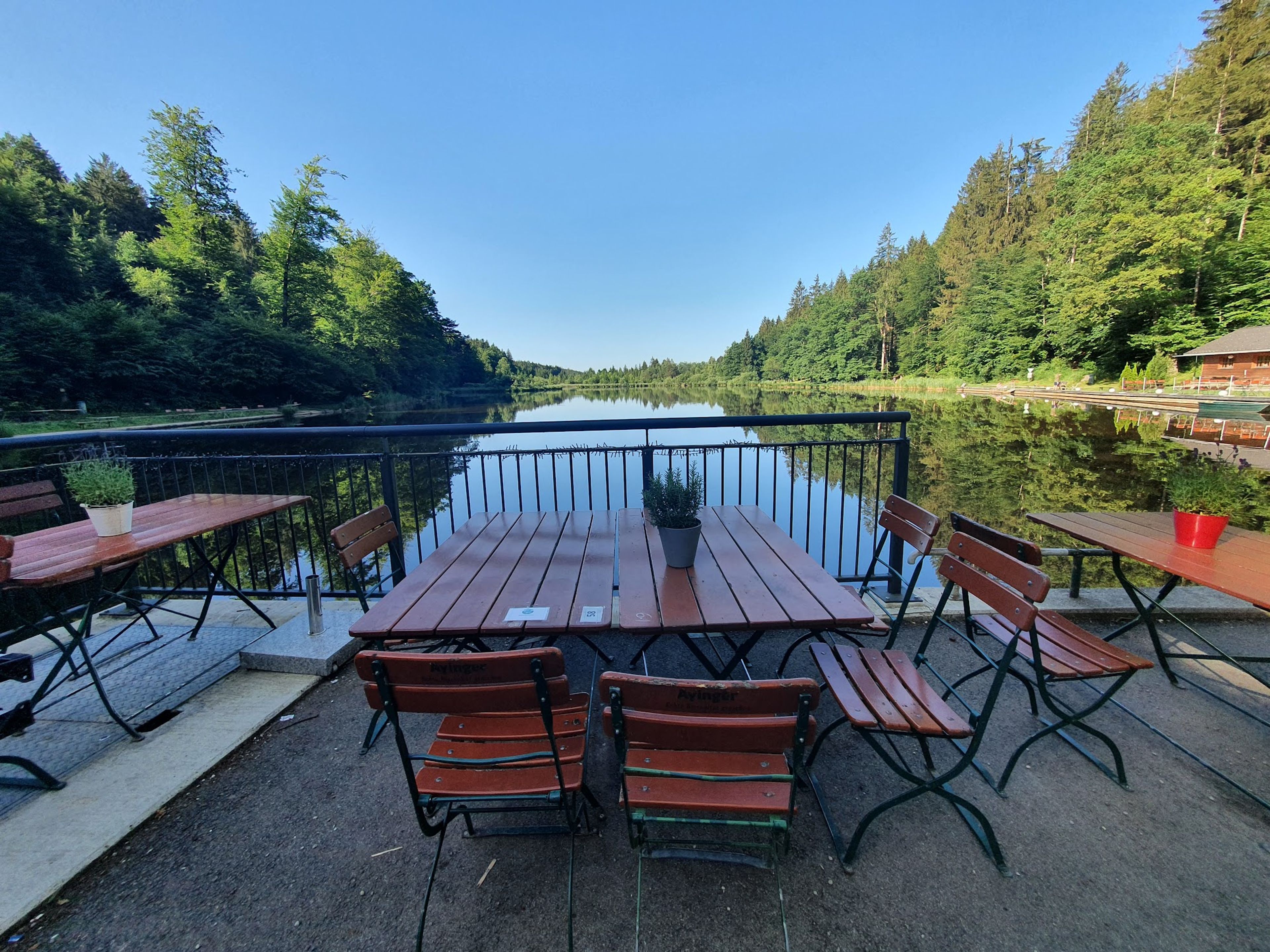 Located by the Deininger Weiher pond, the establishment includes a summer kiosk service providing refreshments during warmer months.