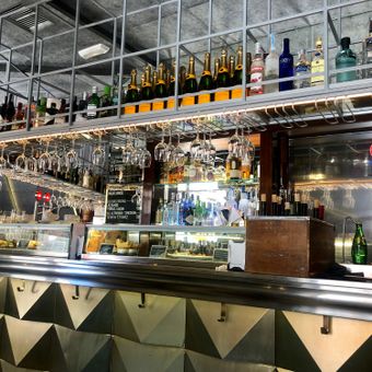 The restaurant prepares Spanish tapas and pintxos using local ingredients, with the Spanish omelette containing caramelized onions as a notable menu item.