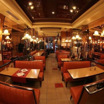 Les Téléphones is a brasserie and bar at a corner spot on Rue Cler, furnished with vintage telephone decorations, period lighting, and classic banquette seating throughout. The interior blends historical details with a comfortable layout suited to both quick meals and leisurely visits.