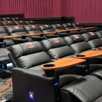 Patrons can order from an American menu directly to their cinema seats through specialized service buttons integrated into the theater seating system.