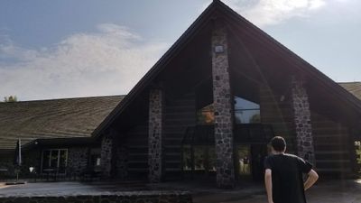 The McMichael Canadian Art Collection occupies 40 hectares of forested land with a main building featuring log walls, stone fireplaces, and 14 exhibition halls.