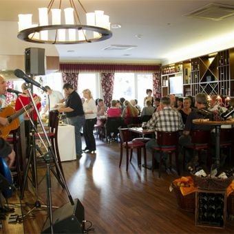 The Bodega restaurant presents a selection of tapas, fish dishes, and meat specialties within a Mediterranean dining setting at Marktstrasse 14.