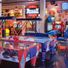 Car culture shapes the decor through vintage automotive memorabilia displayed throughout the space, while live DJs play classic rock music. This creates an environment where guests step into a specific era of American entertainment and leisure.