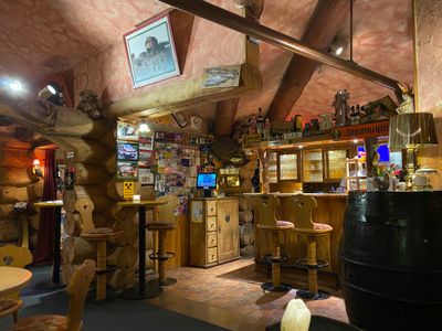 The Baumstammhaus restaurant serves traditional German cuisine, including goulash soup, tomato cream soup, and various schnitzel preparations in its dining spaces.