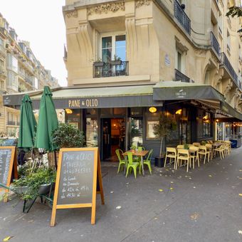 Pane & Olio is a Sicilian restaurant in the 16th Arrondissement serving traditional dishes from the island. The menu features housemade pasta, gnocchi with gorgonzola cream, and fresh buffalo mozzarella in a sun-filled dining space.