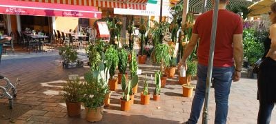 Pain & Cie serves continental breakfasts, homemade breads, and Mediterranean dishes in both an indoor glass conservatory and outdoor seating area.