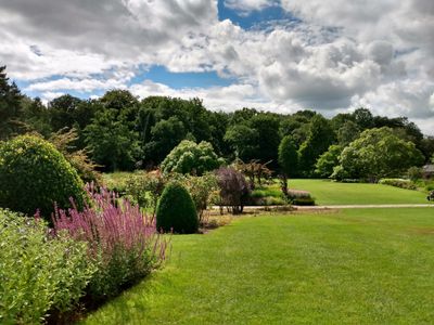The RHS Garden Harlow Carr extends across 58 acres of land, featuring alpine sections, woodland areas, meadows, and several water features throughout the grounds.