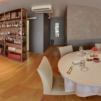 The restaurant presents two surprise menus alongside a set lunch option, complemented by a cheese trolley featuring selections from selected producers.