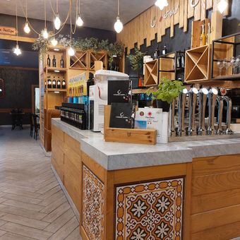 Mozzarella e basilico is a restaurant and pizzeria in Bari that specializes in traditional Italian dishes and Neapolitan-style pizzas. The dining space features both indoor seating and outdoor tables overlooking the surrounding area.