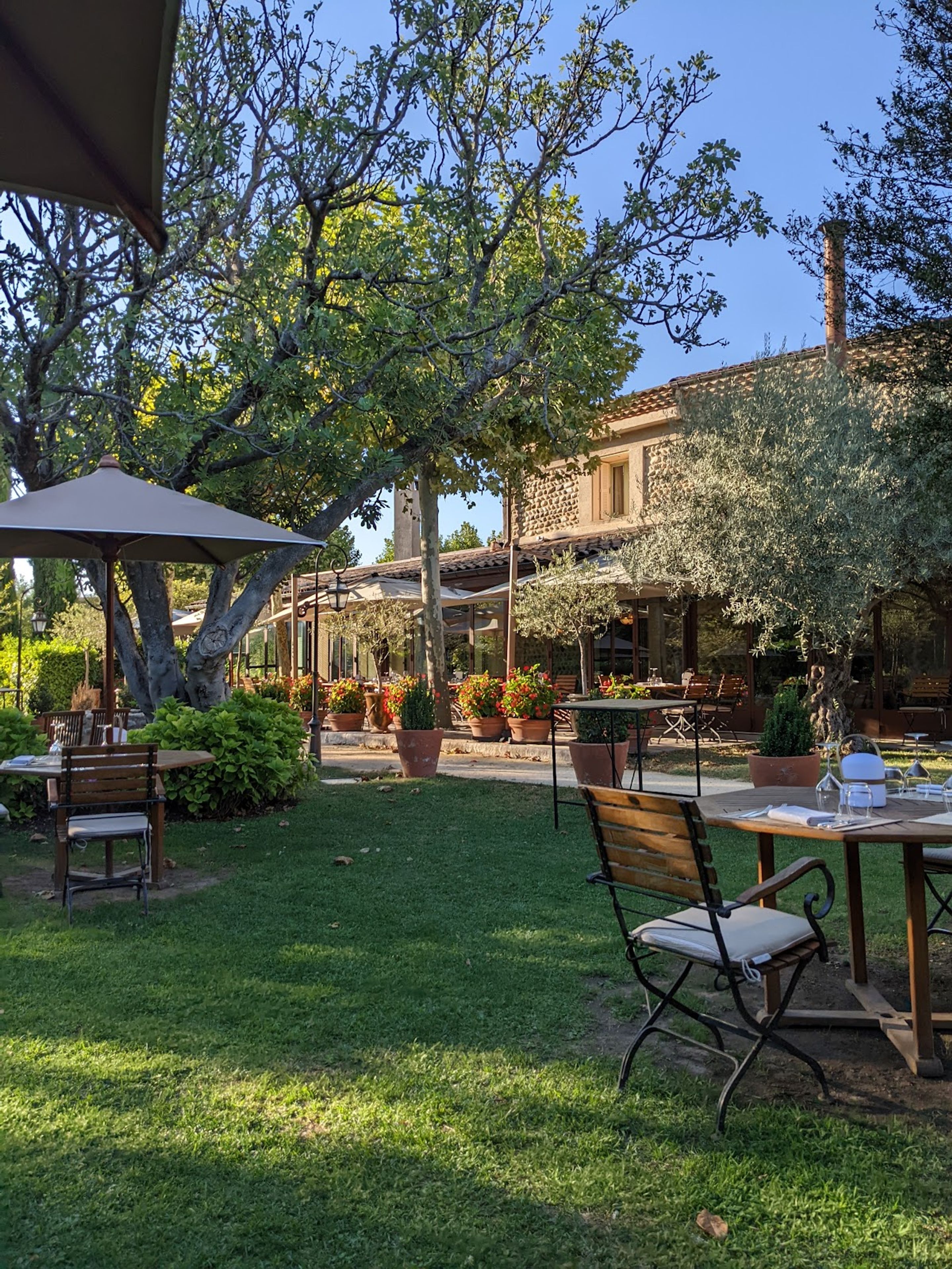 La Grande Table delivers refined French cuisine in an interior with warm tones, featuring a bright veranda and an outdoor garden for sunny days.