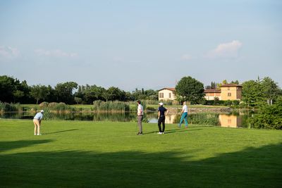 The golf club incorporates elements of northern Italian architectural design in its clubhouse, which serves regional Lombardy dishes at the Ristorante La Colombera.