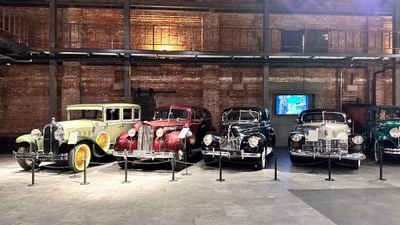 The facility combines automobile exhibitions with dining options, including a steakhouse and café situated within the same historic structure.