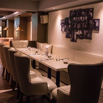 Indulge is an experimental bistro and cocktail bar located in Ren'ai Village, Taipei. The venue spans two levels with white and beige interior design, featuring a basement area suited for larger group gatherings.