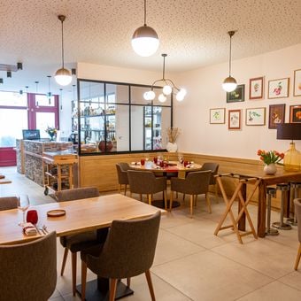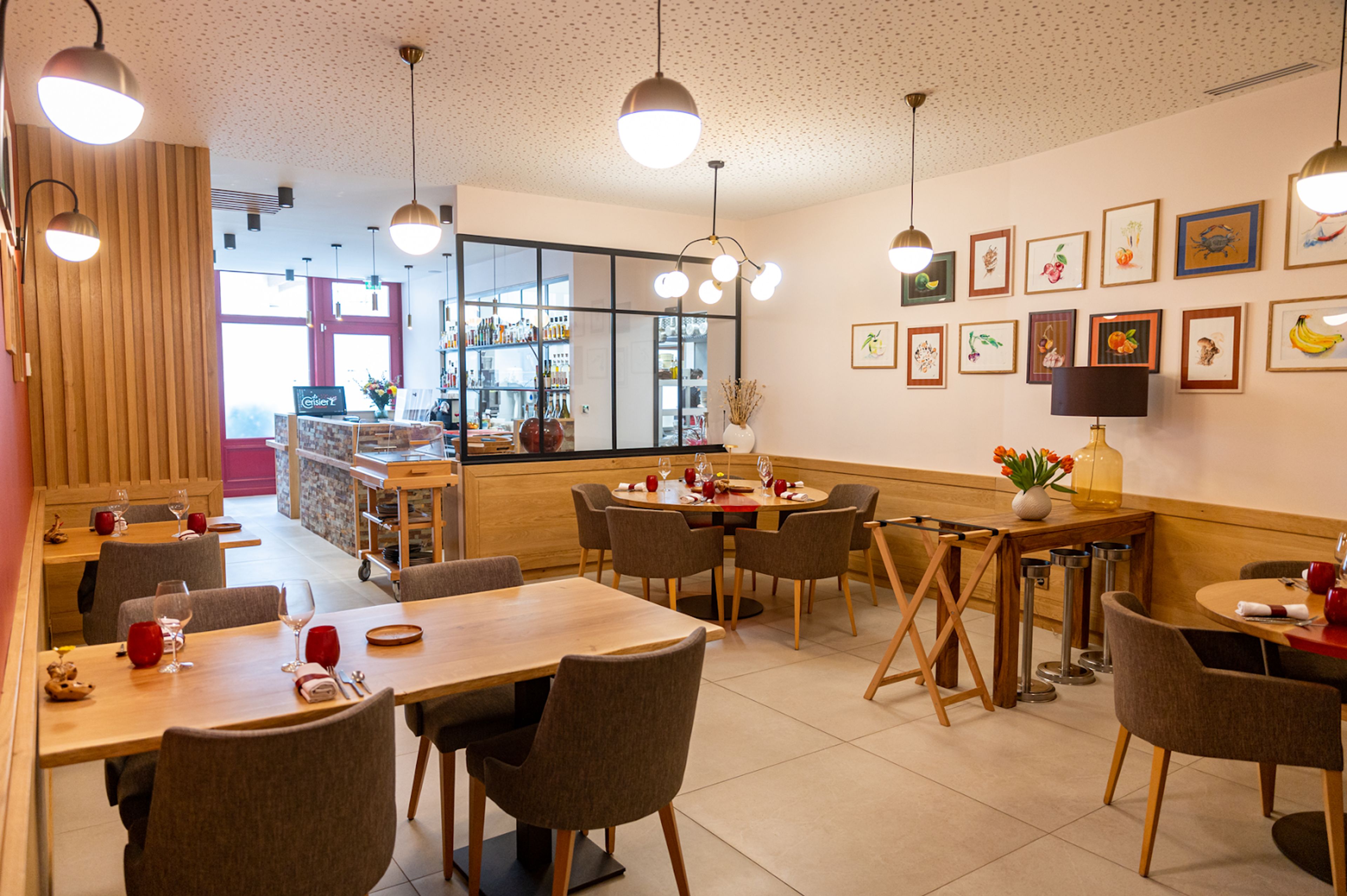 Le Cerisier occupies a refined space at 1 Rue Saint-Joseph, where two dining rooms welcome guests for contemporary French gastronomy.