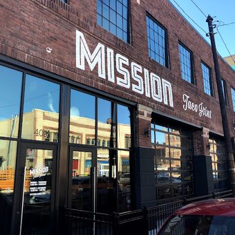 Mission Taco Joint is a restaurant in Kansas City serving Mexican-inspired food, with a focus on tacos in various styles made with house-made tortillas and fillings like mushrooms, chorizo, and fish. The open space features simple, welcoming decor with colorful murals and artwork, plus a full bar offering a range of cocktails.