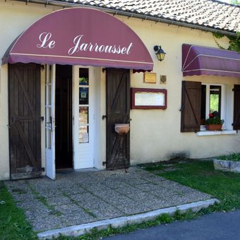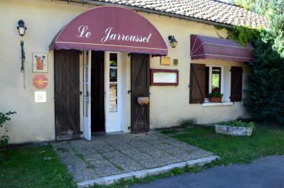 The restaurant Le Jarrousset operates in two dining rooms, accommodating 65 guests total, with an additional garden and terrace for outdoor dining.