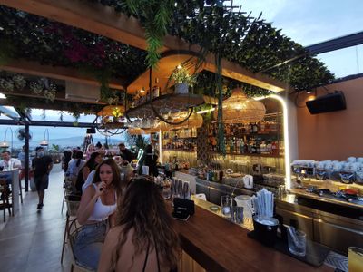 The restaurant is located on the rooftop level, requiring stairs or an elevator to reach the space. Visitors should expect open, breezy conditions and be prepared for exposure to sun and wind throughout the meal.