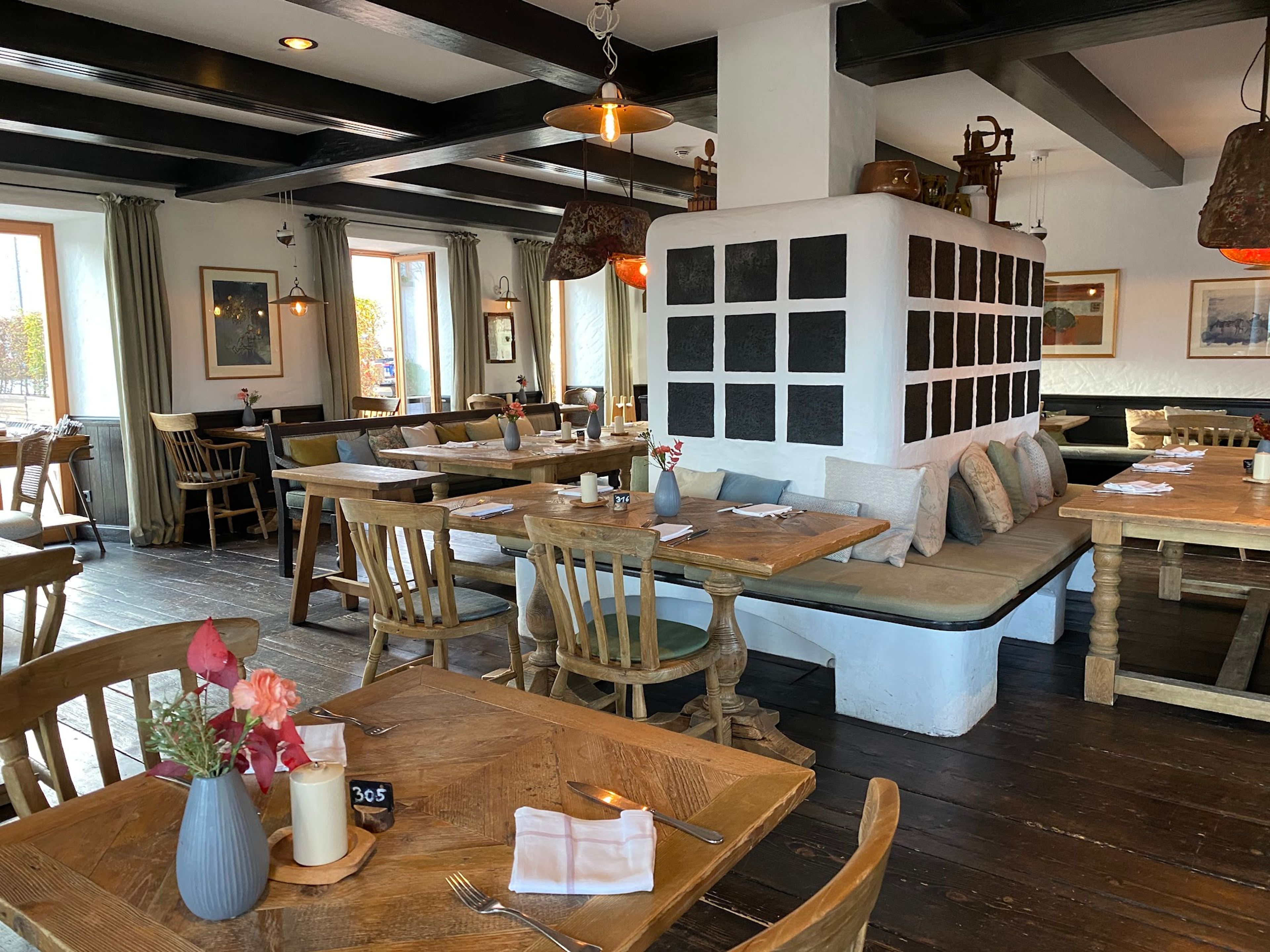 Michael Käfer transformed this centuries-old estate into a dining establishment in 2015, preserving traditional Bavarian architectural elements throughout the structure.