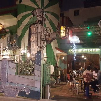 The establishment was founded by artists in 2013 and transformed a residential building into an experimental dining venue challenging traditional restaurant layouts. This artistic origin shaped how the space operates as an unconventional dining space with creative design throughout.