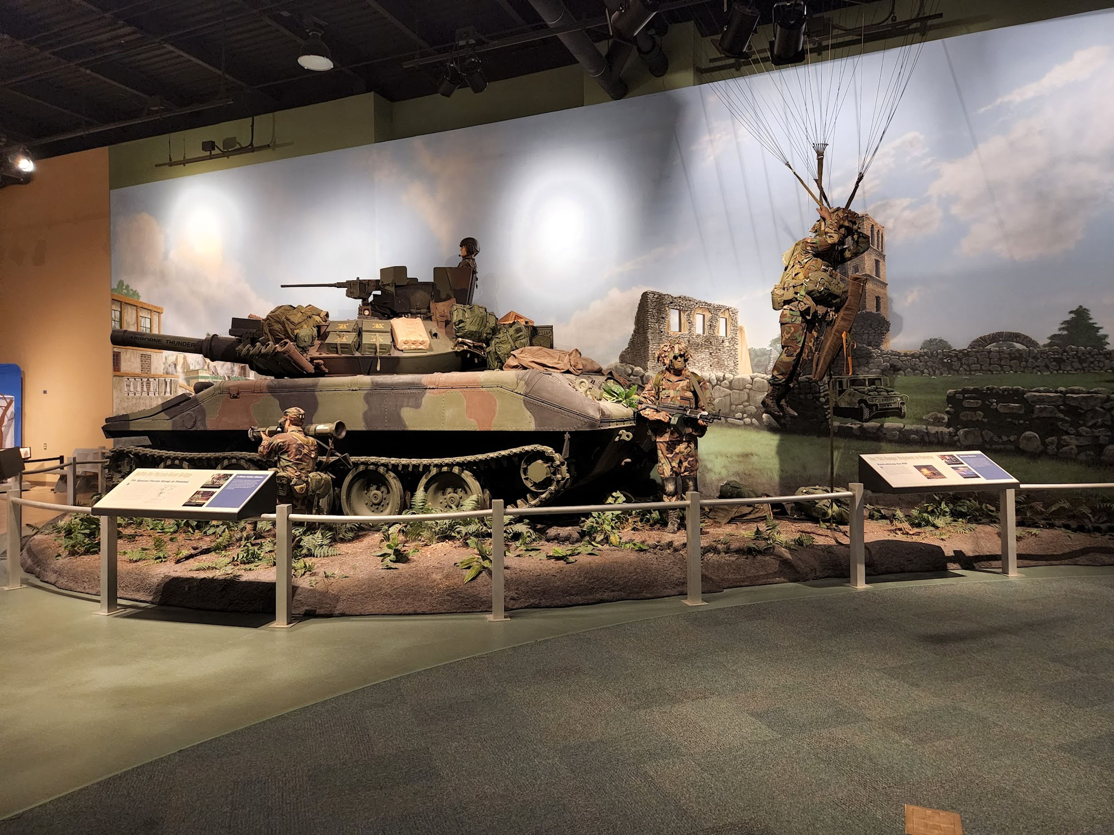 The museum presents detailed exhibits about Operation HALYARD and the Battle of Mogadishu, including parts of the Super 6-1 Black Hawk helicopter from Somalia.